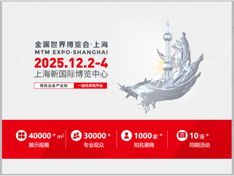 2025金屬世界博覽會(huì)(MTMEXPO)將于2025年12月2日-4日在上海新國(guó)際博覽中心盛大舉辦。本屆博覽會(huì)將以“科技創(chuàng)新、綠色低碳、智能制造、***集約&rd...